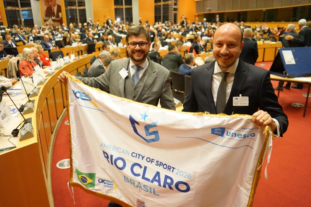 Rio Claro recebeu oficialmente, nesta quinta-feira (11), o título de Cidade Americana do Esporte, durante cerimônia realizada no Parlamento Europeu, em Bruxelas, na Bélgica. A honraria foi entregue ao prefeito Gustavo Perissinotto pela Associação das Capitais e Cidades Europeias do Esporte (ACES Europe).