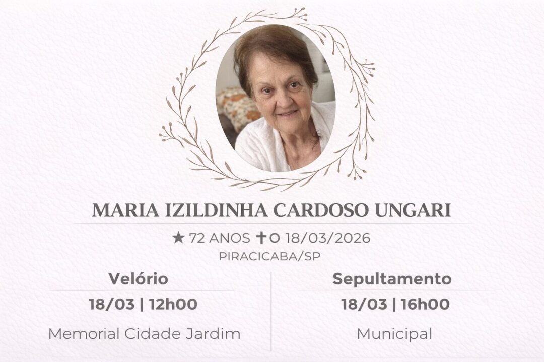 Sepultamento dia 18 as 16:00 hs., saindo o féretro do velório MEMORIAL CIDADE JARDIM, na cidade de Rio Claro para o cemitério MUNICIPAL, na cidade de BROTAS.