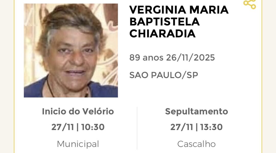 Sepultamento dia 27 as 11:30 hs., saindo o féretro do velório MEMORIAL CIDADE JARDIM, na cidade de Rio Claro para o cemitério EVANGÉLICO, na cidade de Rio Claro.