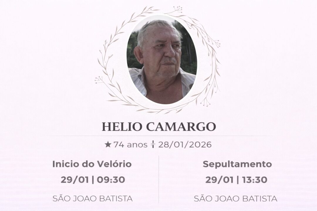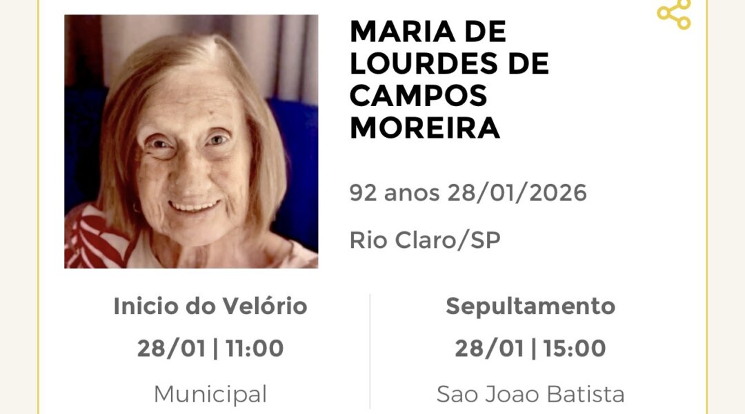 Sepultamento dia 29 as 13:30 hs., saindo o féretro do velório SÃO JOÃO BATISTA, na cidade de Rio Claro para o cemitério SÃO JOÃO BATISTA, na cidade de Rio Claro.