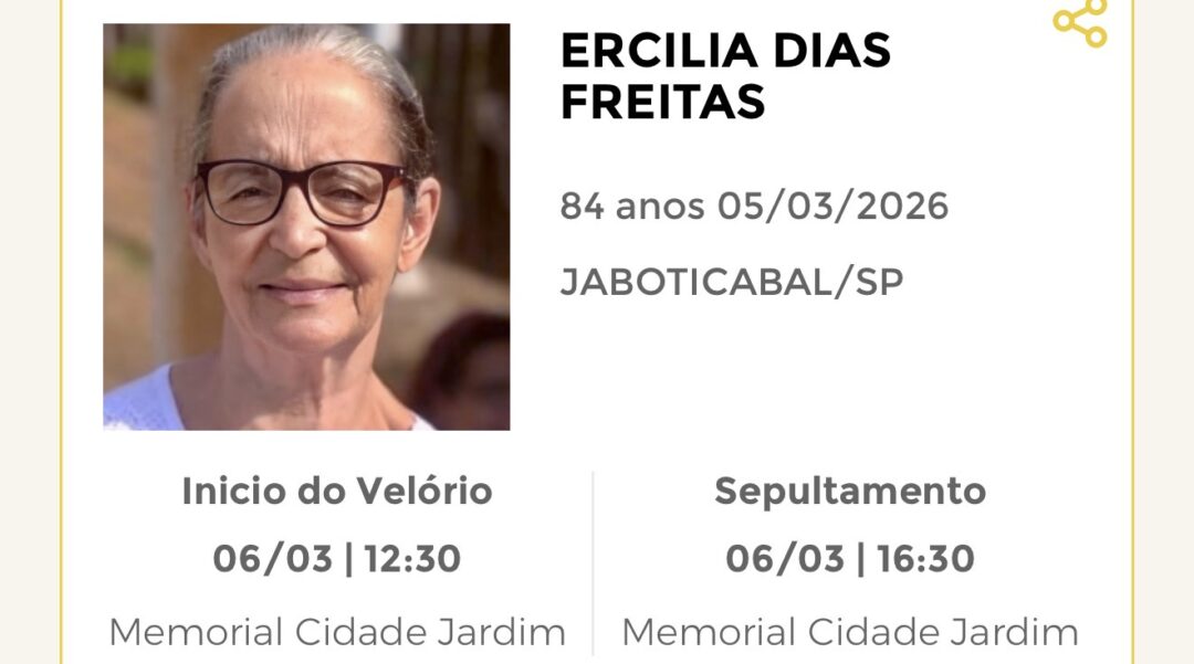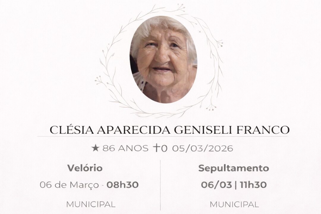 Sepultamento dia 06 as 16:30 hs., saindo o féretro do velório MEMORIAL CIDADE JARDIM, na cidade de Rio Claro para o cemitério MEMORIAL CIDADE JARDIM, na cidade de Rio Claro.