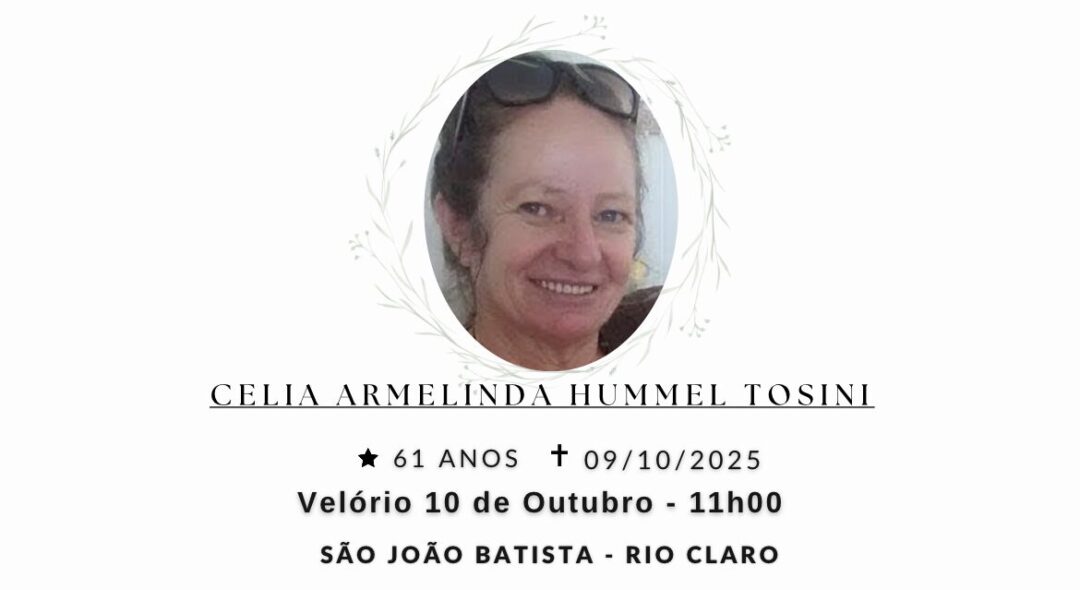 Sepultamento dia 10 as 15:00 hs., saindo o féretro do velório SÃO JOÃO BATISTA, na cidade de Rio Claro para o cemitério SÃO JOÃO BATISTA, na cidade de Rio Claro.