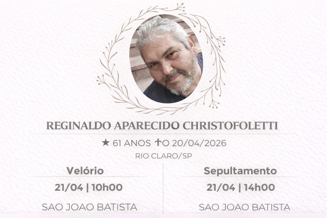 Sepultamento dia 21 as 14:00 hs., saindo o féretro do velório SÃO JOÃO BATISTA, na cidade de Rio Claro para o cemitério SÃO JOÃO BATISTA, na cidade de Rio Claro.
