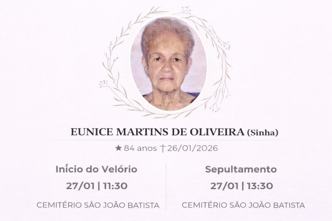 Sepultamento dia 26 as 17:00 hs., saindo o féretro do velório SÃO JOÃO BATISTA, na cidade de Rio Claro para o cemitério SÃO JOÃO BATISTA, na cidade de Rio Claro.
