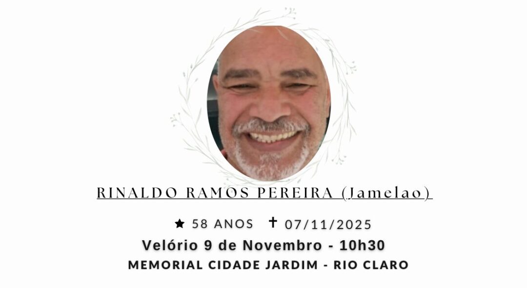 Sepultamento dia 08 as 15:00 hs., saindo o féretro do velório MUNICIPAL, na cidade de Rio Claro para o cemitério SÃO JOÃO BATISTA, na cidade de Rio Claro.