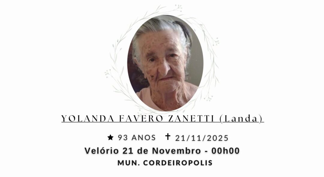 Sepultamento dia 21 as 17:00 hs., saindo o féretro do velório MUN. Cordeirópolis, na cidade de Cordeirópolis para o cemitério MUN. CASCALHO, na cidade de CORDEIRÓPOLIS.