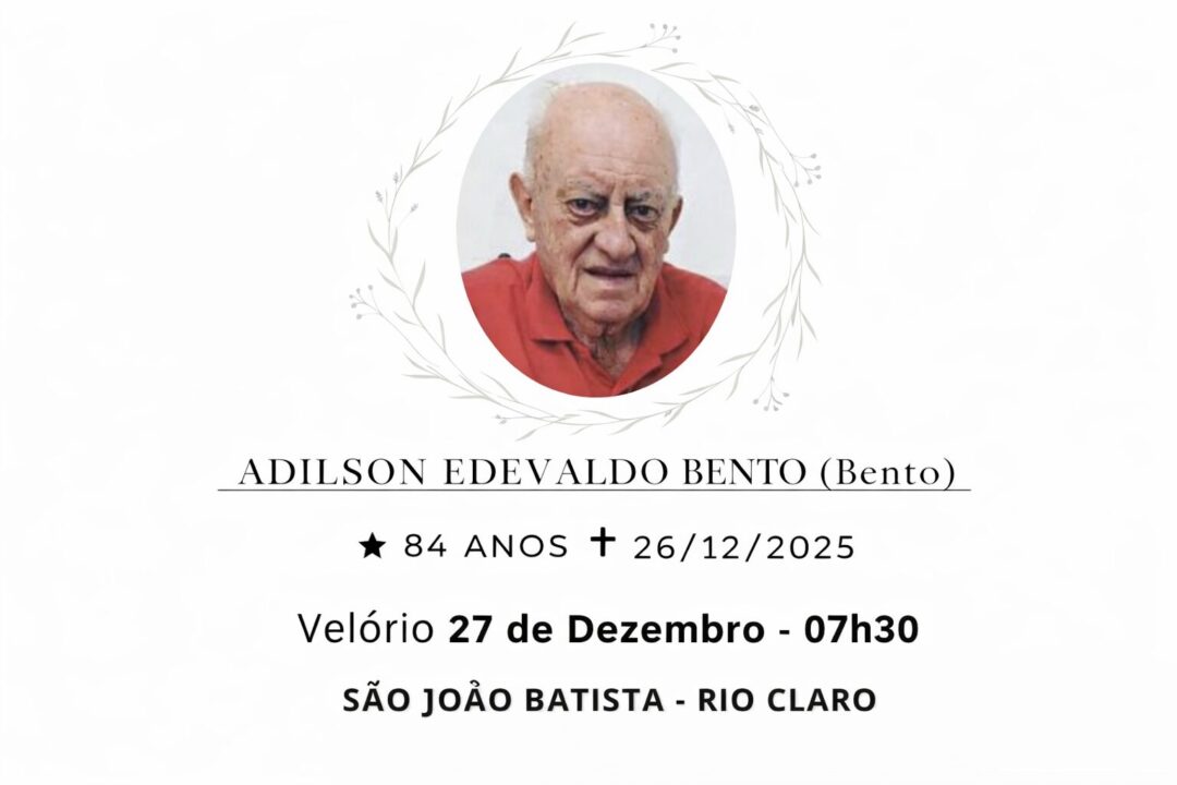 Sepultamento dia 26 as 17:00 hs., saindo o féretro do velório MUNICIPAL, na cidade de Rio Claro para o cemitério SÃO JOÃO BATISTA, na cidade de Rio Claro.