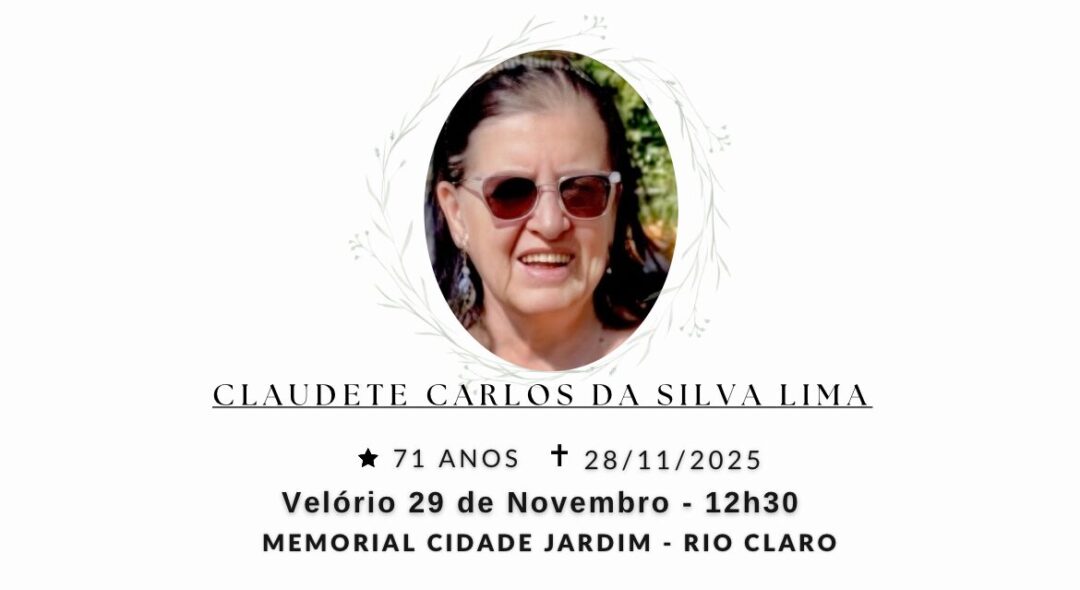 Sepultamento dia 29 as 13:30 hs., saindo o féretro do velório MUNICIPAL, na cidade de Rio Claro para o cemitério SÃO JOÃO BATISTA, na cidade de Rio Claro.