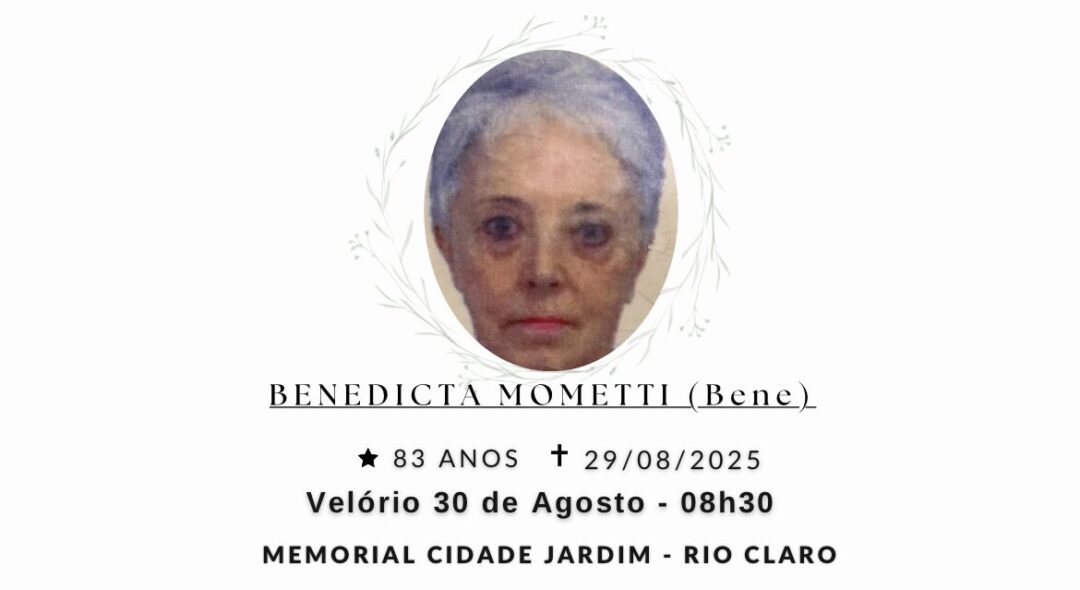 Sepultamento dia 30 as 11:30 hs., saindo o féretro do velório MEMORIAL CIDADE JARDIM, na cidade de Rio Claro para o cemitério MEMORIAL CIDADE JARDIM, na cidade de Rio Claro.