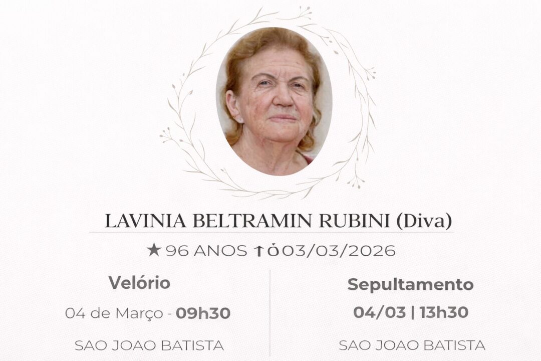 Sepultamento dia 04 as 13:30 hs., saindo o féretro do velório SÃO JOÃO BATISTA, na cidade de Rio Claro para o cemitério SÃO JOÃO BATISTA, na cidade de Rio Claro.