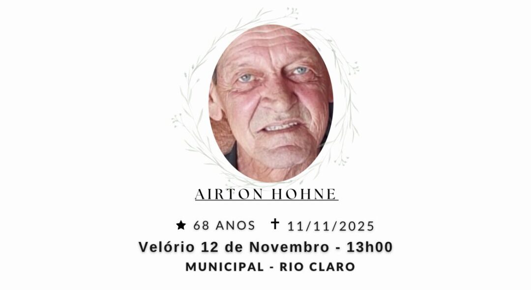 Sepultamento dia 12 as 10:00 hs., saindo o féretro do velório MUNICIPAL, na cidade de Rio Claro para o cemitério SÃO JOÃO BATISTA, na cidade de Rio Claro.