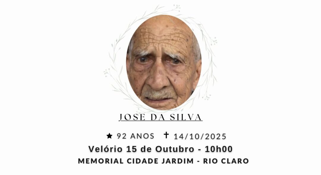 Sepultamento dia 15 as 14:00 hs., saindo o féretro do velório MEMORIAL CIDADE JARDIM, na cidade de Rio Claro para o cemitério MEMORIAL CIDADE JARDIM, na cidade de Rio Claro.