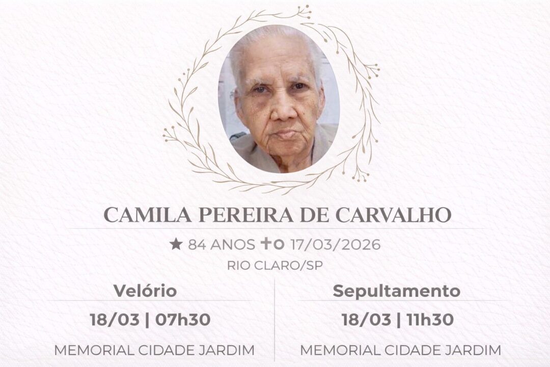Sepultamento dia 18 as 11:30 hs., saindo o féretro do velório MEMORIAL CIDADE JARDIM, na cidade de Rio Claro para o cemitério MEMORIAL CIDADE JARDIM, na cidade de Rio Claro.