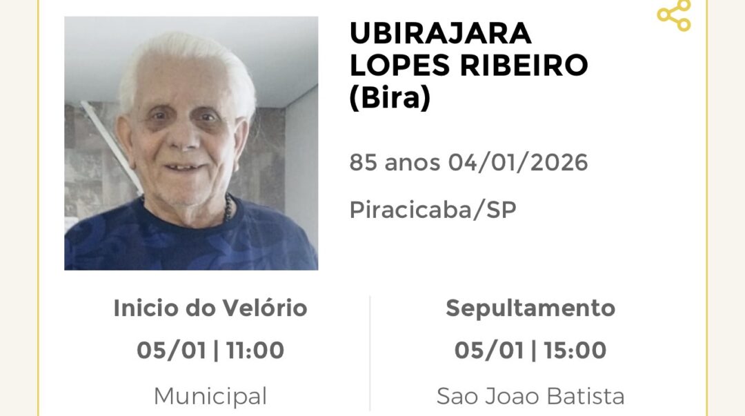 Sepultamento dia 05 as 15:00 hs., saindo o féretro do velório MUNICIPAL, na cidade de Rio Claro para o cemitério SÃO JOÃO BATISTA, na cidade de Rio Claro.