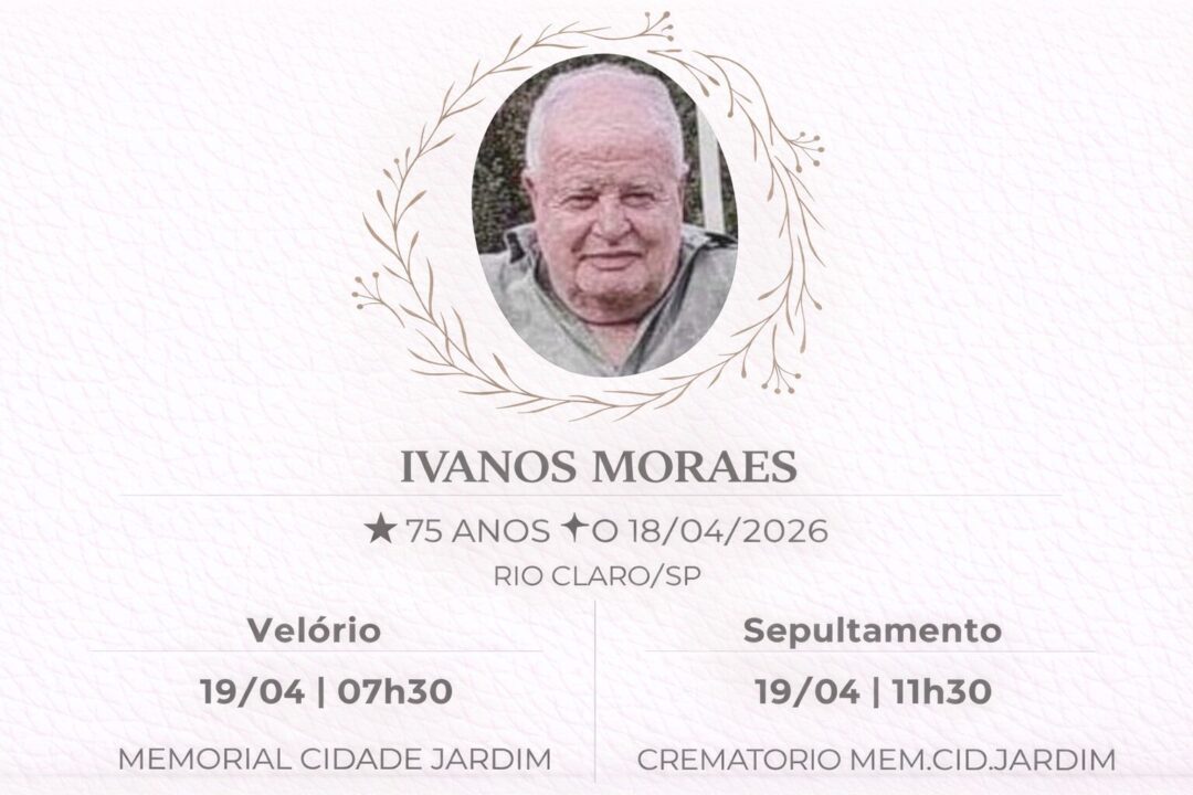 Sepultamento dia 19 as 11:30 hs., saindo o féretro do velório MEMORIAL CIDADE JARDIM, na cidade de Rio Claro para o cemitério CREMATÓRIO MEM.CID.JARDIM, na cidade de Rio Claro.