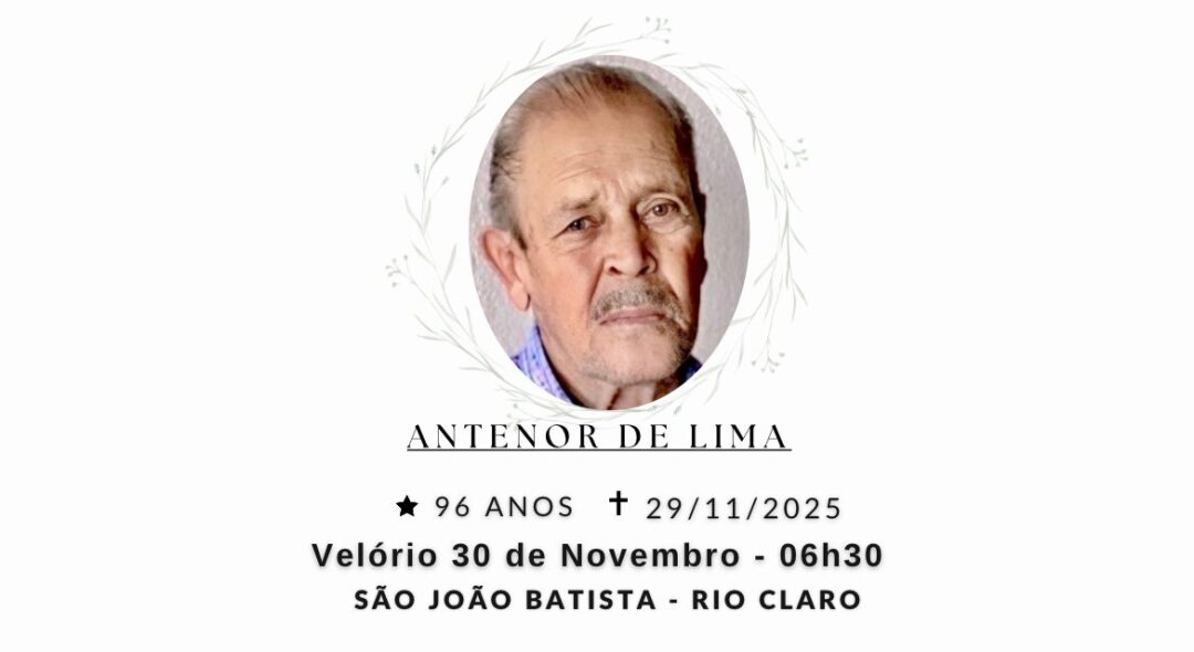 Sepultamento dia 30 as 10:30 hs., saindo o féretro do velório SÃO JOÃO BATISTA, na cidade de Rio Claro para o cemitério SÃO JOÃO BATISTA, na cidade de Rio Claro.