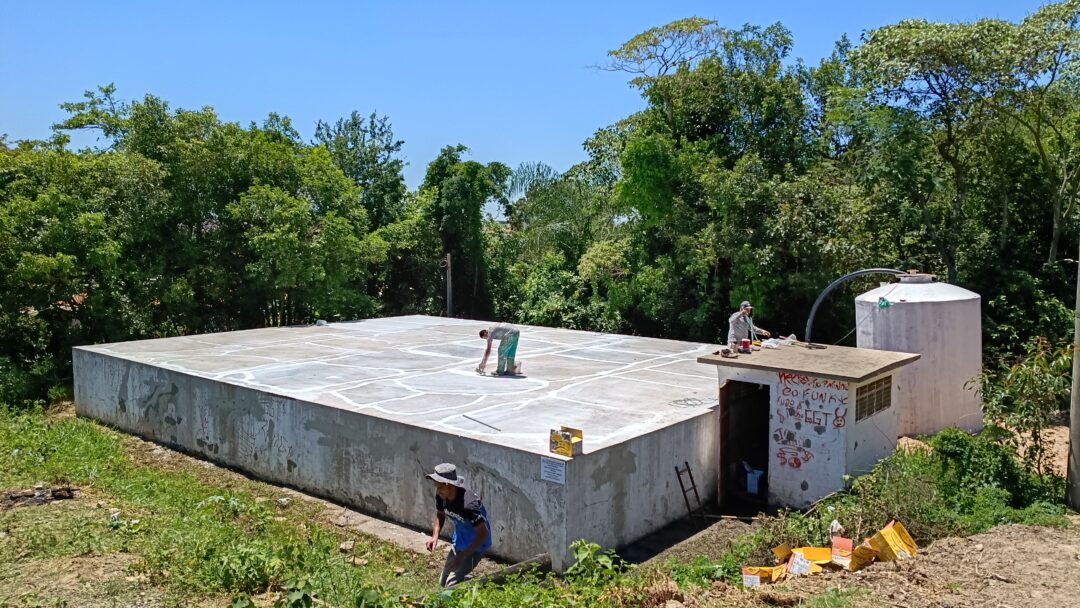 Após lavagem e identificação de trincas e vazamentos, na parte interna, estão sendo feitos serviços de impermeabilização em toda a estrutura e a instalação de nova escada de acesso.
