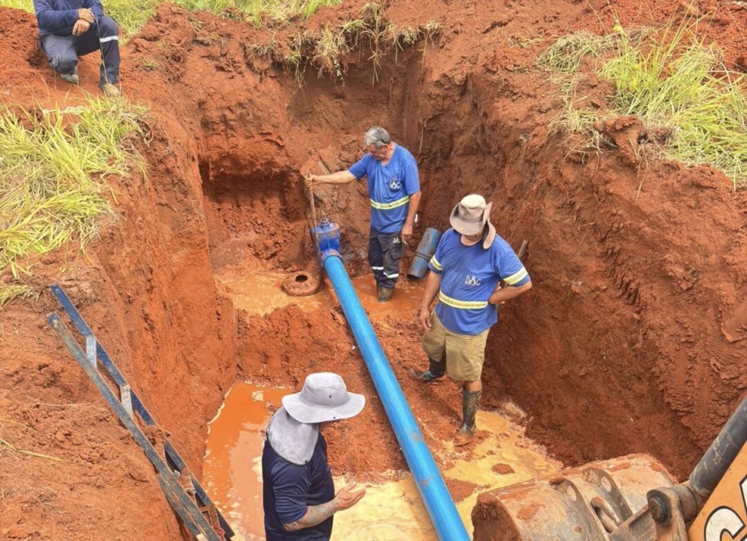 Segundo a autarquia, o problema foi identificado após um trabalho detalhado de “caça-vazamento”. A falha estava em um registro de manobra quebrado, localizado no canteiro da Avenida Ápia, próximo ao trevo da Viviani, nas imediações da Rodovia Washington Luís.