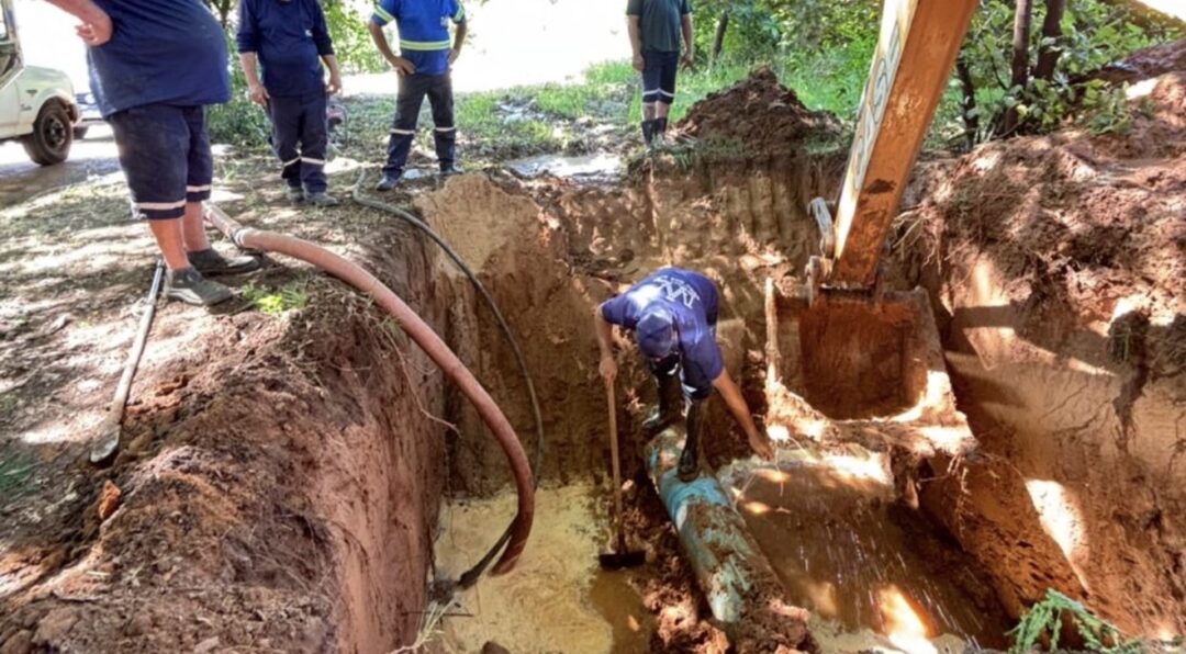 O Departamento Autônomo de Água e Esgoto (Daae) de Rio Claro executa, nesta quinta-feira (29), um reparo emergencial em uma adutora de 300 milímetros que se rompeu em área próxima à Avenida 1Ji, no Jardim Inocoop.