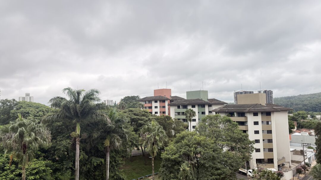 Ao longo do dia, o céu permanece carregado, com momentos de melhoria temporária, mas a instabilidade volta a ganhar força no fim da tarde. As temperaturas ficam amenas em comparação aos últimos dias, sem previsão de calor intenso.