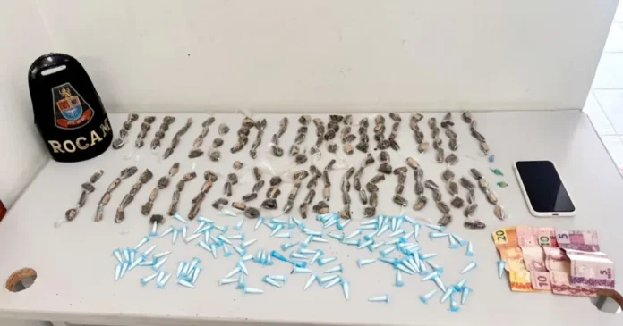 A abordagem ocorreu na Lagoa Seca, no bairro Cervezão, durante patrulhamento da equipe policial. No local, os menores foram flagrados com porções de maconha, cocaína e crack, além de R$ 45 em dinheiro.