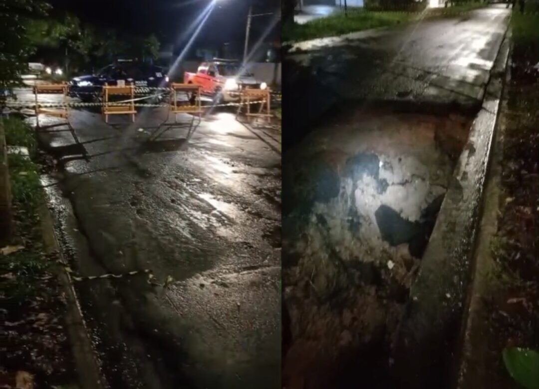 A forte chuva registrada na noite desta segunda-feira (6) provocou diversos transtornos em Rio Claro (SP). Um dos pontos mais críticos foi na Avenida Ulysses Guimarães, próximo à Avenida 8, no bairro Bela Vista, onde o asfalto cedeu e abriu um grande buraco na via.