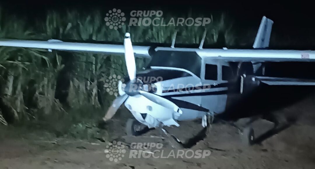 Um avião de pequeno porte foi localizado na tarde desta sexta-feira (27) em um canavial na zona rural de Brotas (SP). A aeronave estava com avarias e teria realizado pouso em uma área não autorizada, caracterizando pista clandestina.