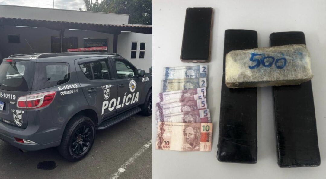 O dinheiro apreendido, no valor de R$ 34, foi encontrado no bolso do maior de idade, que já possui antecedentes por tráfico de drogas e receptação, segundo a polícia.
