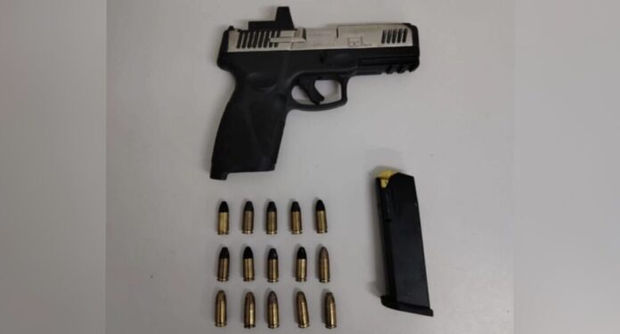 Durante a abordagem, o condutor afirmou que não havia nada de ilícito com ele ou no carro. No entanto, durante a busca veicular, os policiais localizaram uma pistola Taurus G3 calibre 9mm, municiada com 15 munições, escondida embaixo do banco do motorista, presa por um mecanismo.
