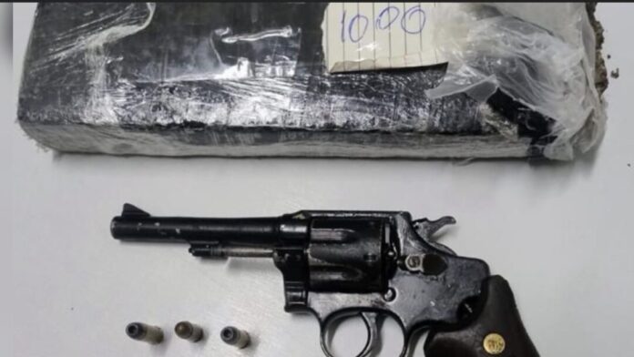 Durante a abordagem, o homem, de 29 anos, não portava nada ilícito, mas na busca pelo imóvel os policiais encontraram um revólver calibre .32 escondido próximo à caixa d’água, além de uma mochila com um tijolo de maconha.