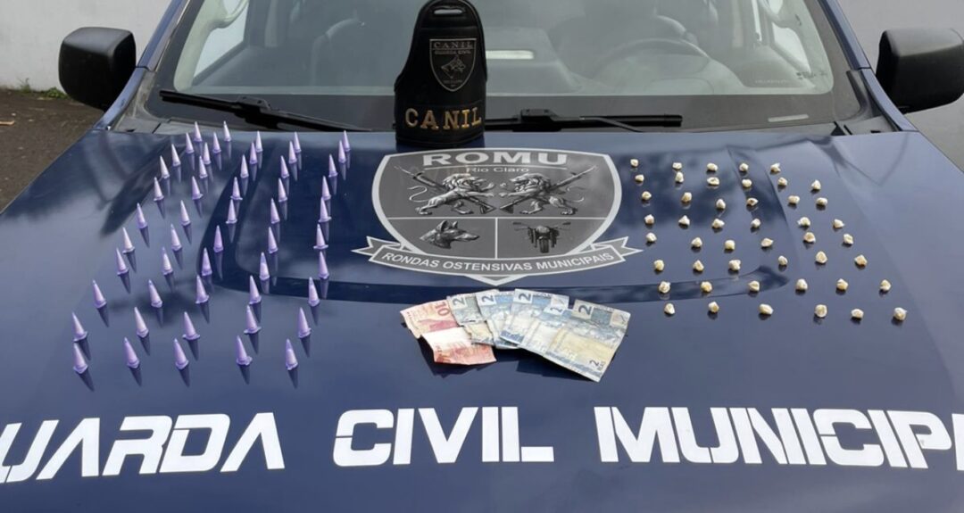 A equipe de Canil da Guarda Civil Municipal de Rio Claro (SP) prendeu em flagrante um homem por tráfico de drogas na tarde desta quinta-feira (18), no bairro Parque São João.