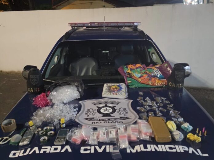 Durante patrulhamento de rotina na noite deste domingo (29), equipes da Guarda Civil Municipal localizaram drogas e diversos materiais utilizados no preparo e comercialização de entorpecentes em uma área de mata nas proximidades da Escola Municipal Armando Grisi, em Rio Claro (SP).