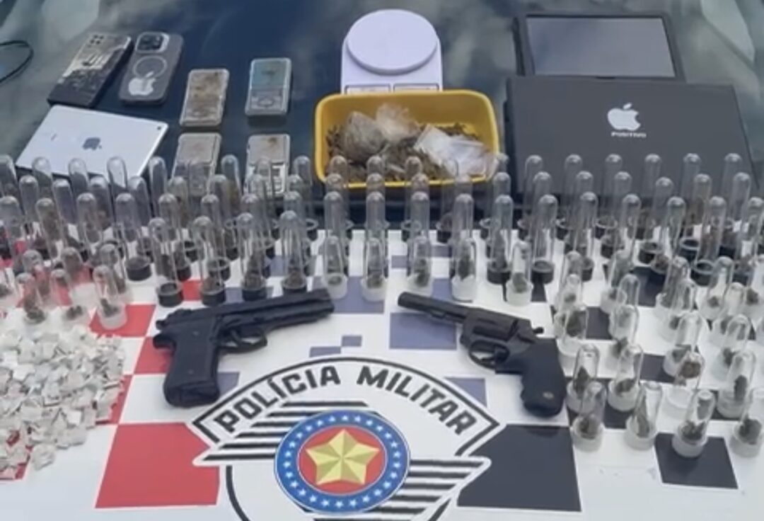 De acordo com a PM, equipes da 1ª Companhia do 37º BPM/I chegaram aos envolvidos após denúncia anônima. As diligências foram realizadas em dois endereços ligados à prática criminosa. No primeiro local, os policiais localizaram entorpecentes, uma arma de fogo e outros materiais associados ao tráfico.