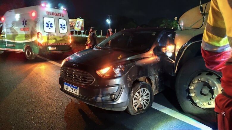 Uma colisão entre um caminhão e um automóvel foi registrada na noite desta segunda-feira (23), no km 240 da Rodovia Washington Luís (SP-310), no sentido capital–interior.
