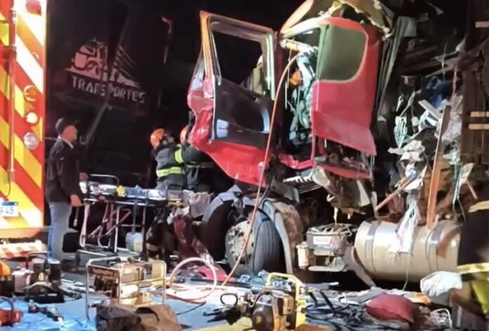 O condutor da carreta Scania não resistiu aos ferimentos e teve o óbito constatado às 22h40. O motorista da carreta Volvo não se feriu e permaneceu no local aguardando o transbordo da carga de energético que transportava.
