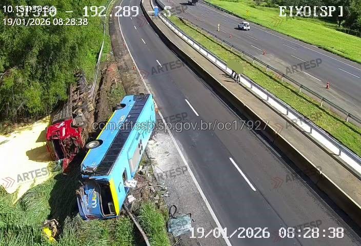 De acordo com informações da concessionária Eixo SP, o ônibus trafegava pela faixa 2 de rolamento quando foi atingido na traseira por uma carreta. Após a colisão, ambos os veículos perderam o controle, avançaram para o canteiro lateral e tombaram.