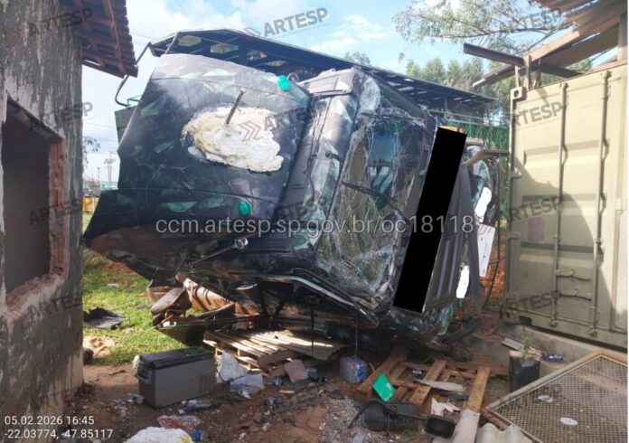 Após a colisão, a carreta perdeu o controle, saiu da pista e invadiu uma residência localizada às margens da rodovia. O veículo atingiu um poste, causou danos no telhado do imóvel e colidiu com um automóvel estacionado, pertencente a um pedreiro que estava no local. Apesar do impacto e dos prejuízos materiais, ninguém que estava na casa ficou ferido.