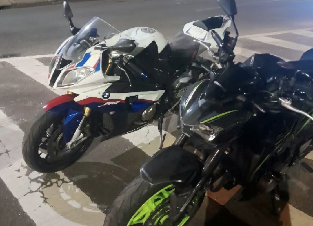 Durante patrulhamento, os policiais flagraram dois motociclistas disputando corrida na avenida. Ao perceberem a aproximação da viatura, os condutores interromperam a disputa e pararam os veículos no trecho entre as ruas 9 e 14, onde foram abordados.