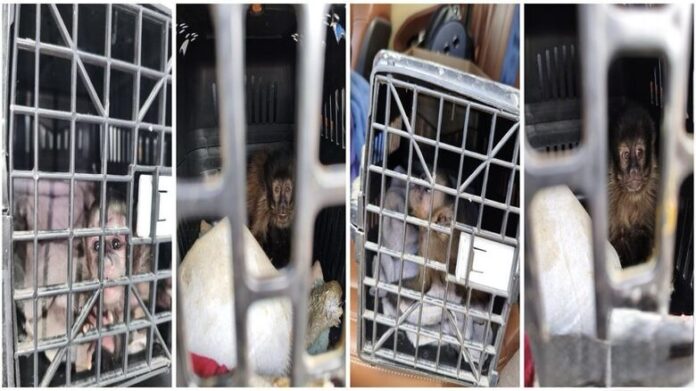 Dois homens, de 31 e 35 anos, foram detidos na tarde deste sábado (29) pelo Tático Ostensivo Rodoviário durante uma abordagem no km 273 da Rodovia Washington Luís (SP-310), em Araraquara. Eles transportavam quatro macacos-prego dentro de um veículo de luxo. A ação contou com apoio da Polícia Militar Ambiental.