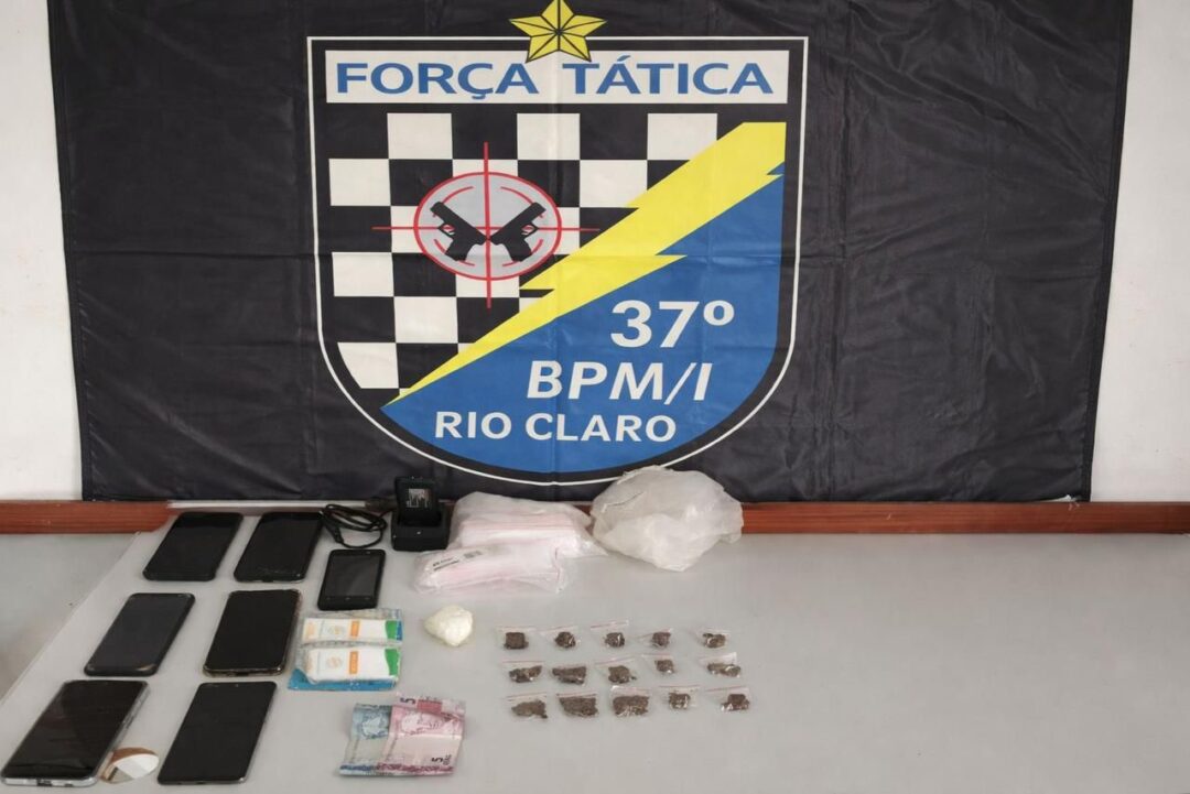 Dois homens foram presos por tráfico de drogas e associação para o tráfico na manhã de quinta-feira (16) no bairro Bom Retiro, em Rio Claro (SP).
