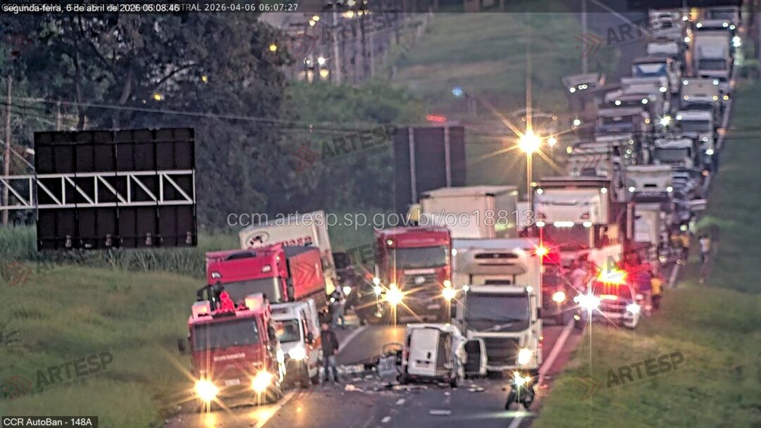 Um engavetamento envolvendo três veículos foi registrado na manhã desta segunda-feira (6) na Rodovia Anhanguera (SP-330), no km 149, em Limeira (SP).