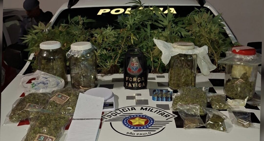 Durante patrulhamento da Força Tática, a equipe recebeu denúncia indicando que uma residência no local estaria sendo utilizada para a venda de entorpecentes. Em vistoria no imóvel, os policiais localizaram aproximadamente 1,3 kg de maconha.