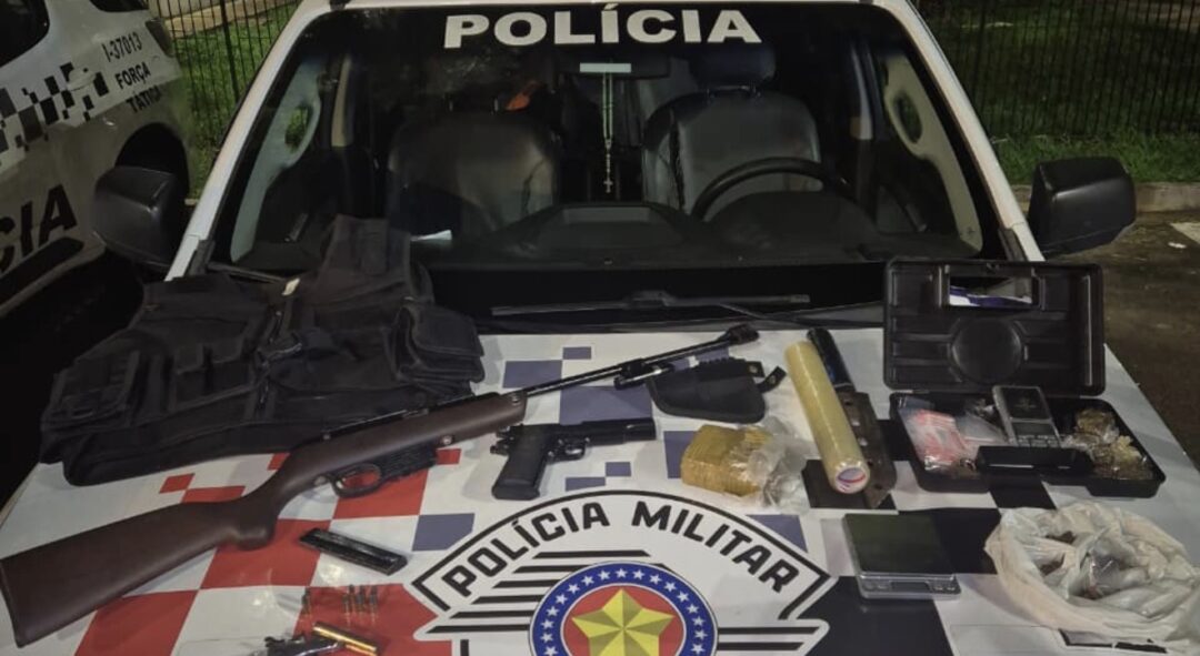 A Polícia Militar apreendeu armas, munições e drogas durante uma ação da equipe de Força Tática de Rio Claro (SP) na noite desta terça-feira (18) em Araras (SP). A ocorrência teve início por volta das 21h, após informações de que uma negociação envolvendo armamentos ocorreria na Rua Professora Maria Amália Zochio Rodolfo, no bairro Fátima.