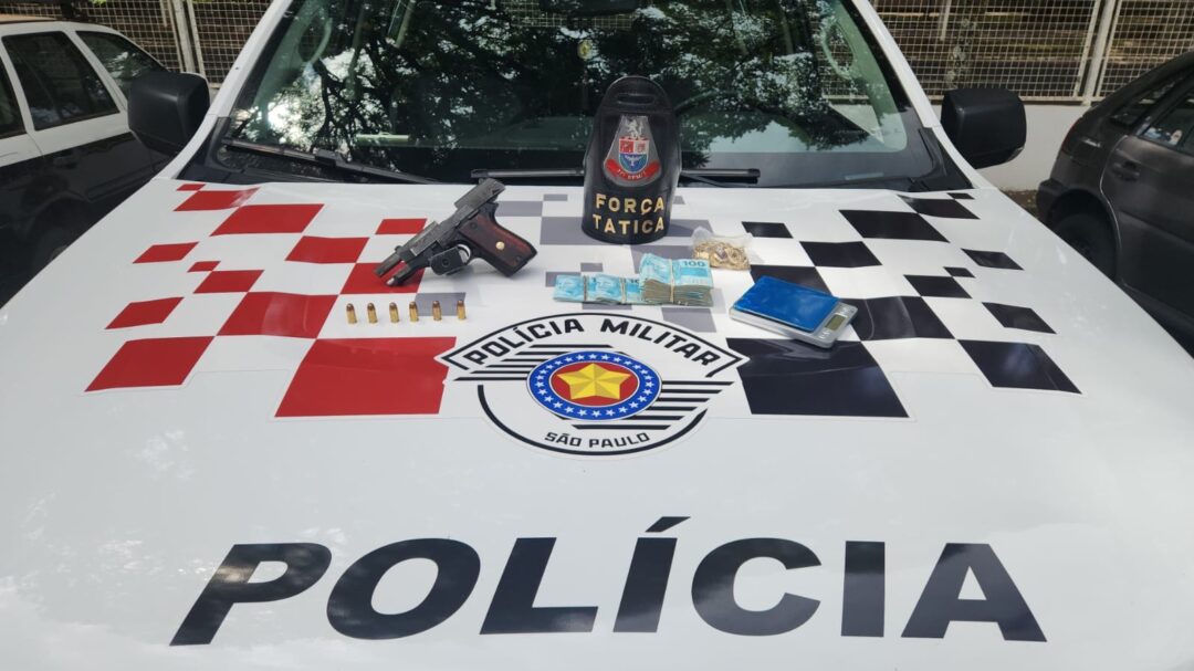 A Polícia Militar apreendeu uma pistola de uso restrito e diversos objetos na tarde desta terça-feira (18) durante patrulhamento de Força Tática no bairro Consolação, em Rio Claro (SP). A abordagem ocorreu após a equipe parar um veículo em deslocamento pela região.