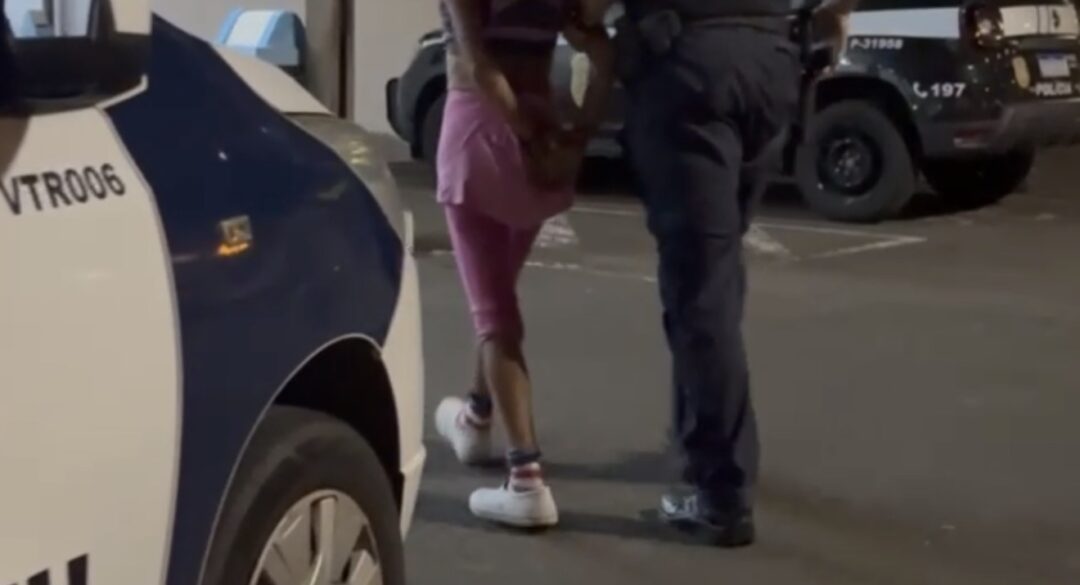 Diante da constatação, foi solicitado apoio de uma viatura de supervisão para condução da mulher até a autoridade policial. No plantão, foi confirmado que ela possui condenação de um ano e oito meses, a ser cumprida em regime aberto.