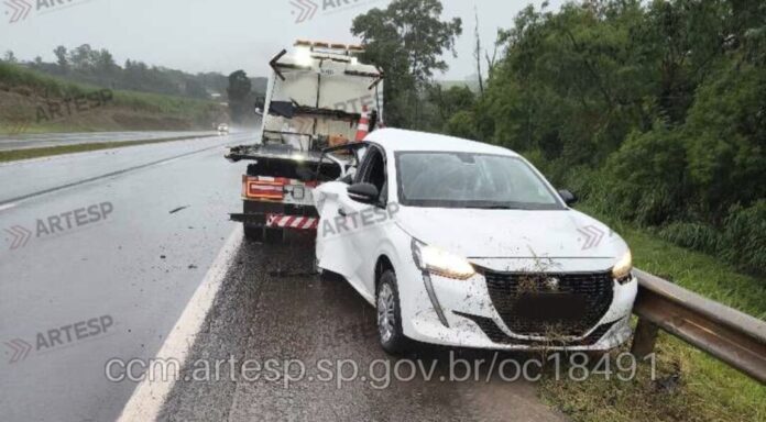 Durante a análise da cena, os policiais também localizaram um veículo estacionado próximo ao ponto do acidente, com danos na lateral direita.