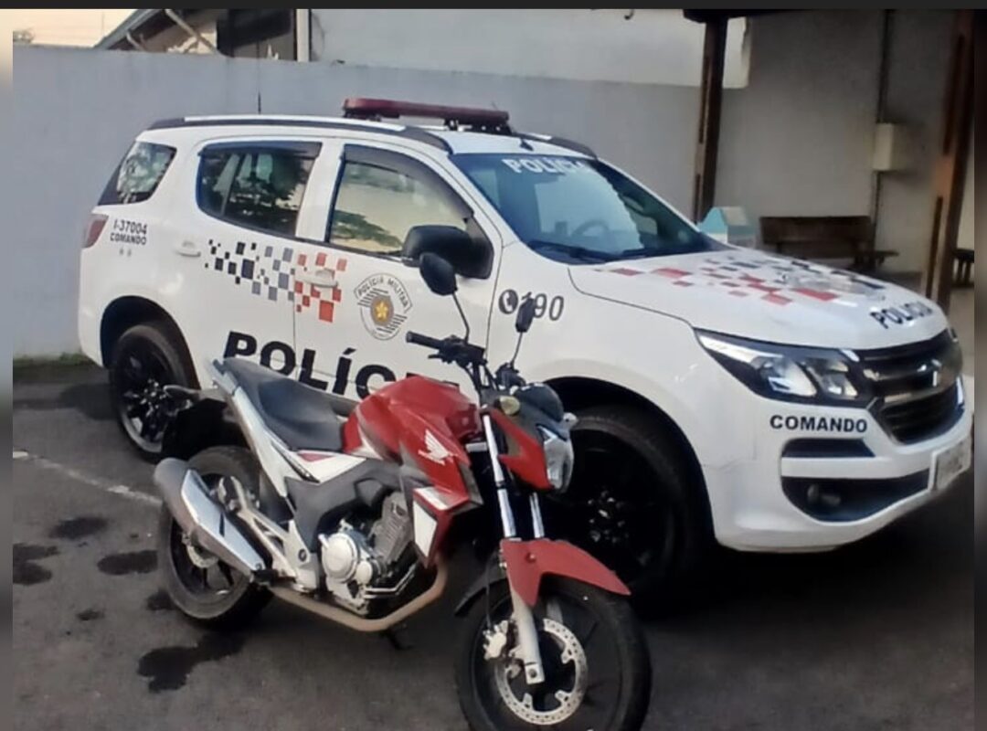 Após consulta, foi constatado que a motocicleta era produto de furto ocorrido nas proximidades do Sobradão Eventos.