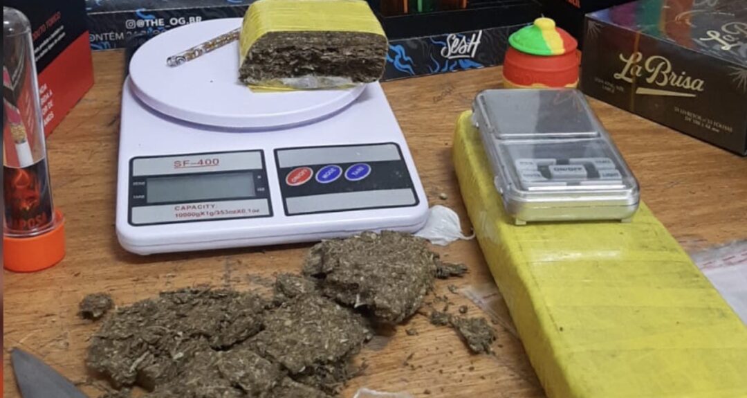 No local, os policiais encontraram duas balanças de precisão, três porções grandes de maconha, uma porção de “dry” e diversas embalagens plásticas. Com o apoio do cão farejador da Guarda Civil Municipal, também foi localizado, dentro de um veículo VW Gol estacionado no quintal, um tijolo e meio de maconha.