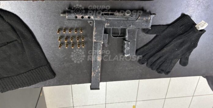 A Polícia Militar prendeu um homem e apreendeu outro que permanece hospitalizado após uma perseguição que terminou em acidente na manhã desta terça-feira (9), em Rio Claro (SP). A ocorrência resultou na apreensão de uma submetralhadora artesanal calibre 9 mm, carregada com 15 munições intactas.