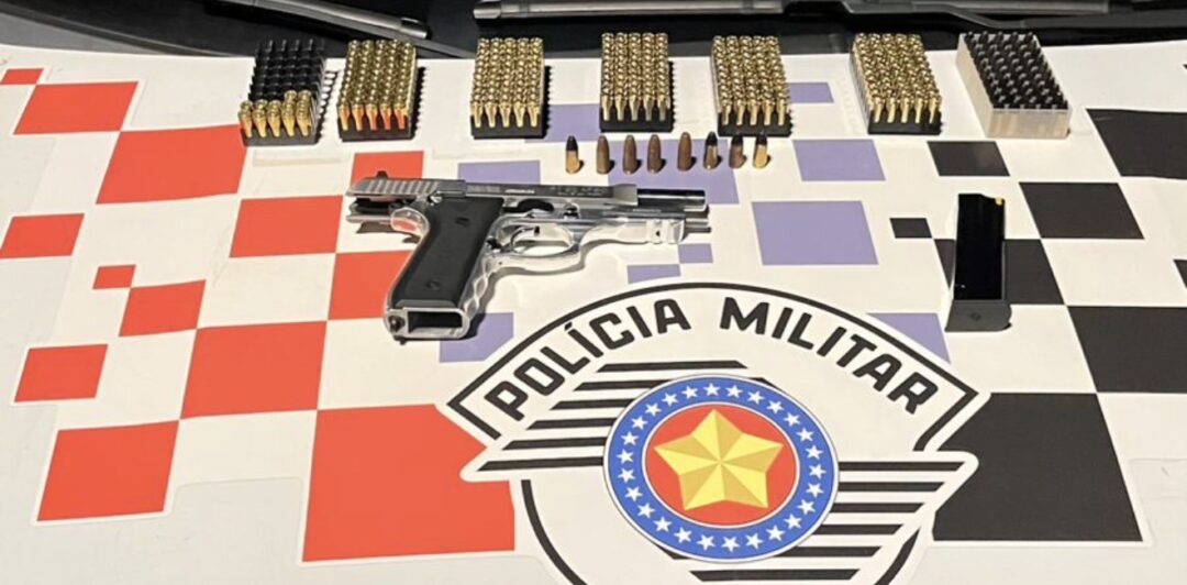 De acordo com a PM, durante a averiguação da ocorrência surgiram informações sobre ameaças e a possível existência de uma arma de fogo no imóvel. Diante da situação, os policiais realizaram diligências no local. Com a entrada franqueada, a equipe localizou uma pistola calibre 9 milímetros municiada, além de grande quantidade de munições.